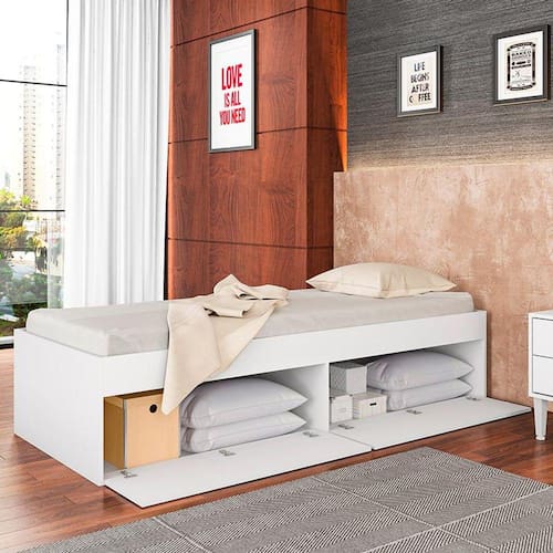 CAMA SOLTEIRO 80 COM 4 PORTAS TÓKIO BRANCO