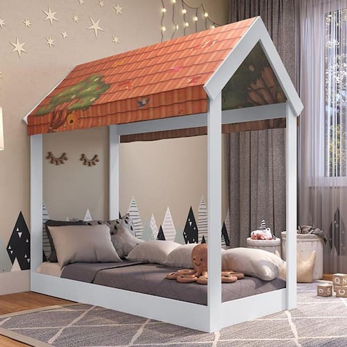 CAMA INFANTIL COM TELHADO MONTESSORIANO MEU FOFINHO BRANCO
