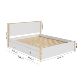 A Cama Íris é um modelo com design versátil e moderno. Ela permite armazenar objetos, calçados e outros itens em suas duas gavetas. Produzida em madeira maciça de pinus a estrutura é resistente e bela. Depois nos conte como foi a experiência de compra e como ficou seu ambiente nos comentários. Acabamento da Gaveta: Pintura Acabamento dos Pés: Verniz Acompanha Cama Auxiliar: Não Acompanha Colchão: Não Altura do Estrado até o Chão: 26 Altura dos Pés: 36 Ambiente Principal: Quarto Complexidade da Montagem: Alta: deve ser montado por um montador especializado Cor: Branco/Natural Cor do Produto: Branco/Natural Escala de Brilho: Fosco Escala de Brilho da Gaveta: Fosco Extensível: Não Gaveta com Chave: Não Informações Complementares: A cama suporta até 200kg distribuídos, ou seja, 100kg em cada lado. Itens Inclusos: 1 Cama com Gavetas, Kit de Ferragens e Instrução de Montagem Manual de Montagem e Instalação: https://product-hub-prd.madeiramadeira.com.br/909067/documents/f4f3de8a-04ef-4e87-a0b0-99e4581ef2211964078338717159467708355.pdf Material da Gaveta: MDF Material do Estrado: Pinus Material dos Pés: Madeira Maciça Material Principal: Madeira Maciça Necessita Montagem: Sim Origem do Produto: Nacional Permite a Utilização de Cama Auxiliar: Não Peso: 85,5 kg Peso Máximo por Gaveta: 4 Possui Baú: Não Possui Gavetas: Sim Possui Pés: Rodapé Possui Portas: Não Possui Prateleiras: Não Possui Rodízio: Não Quantidade de Gavetas: 04 Gavetas Recomendações de Uso, Manutenção e Limpeza: Retire o pó com flanela seca e reaperte os parafusos de tempos em tempos. Sapatas Niveladoras: Não Sistema de Montagem: Cavilhas, parafuso minifix, parafuso philips e parafuso allen. Tamanho do Colchão Indicado (L x C): 1,58x1,98 Tipo de Cama: Convencional Tipo de Colchão: Queen Tipo de Corrediça da Gaveta: Metálica Simples Tipo de Estrado: Fixo Tipo de Madeira Maciça: Pinus Tipo de Madeira Maciça dos Pés: Pinus Tipo de Puxador da Gaveta: Externo