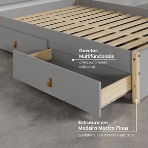 A Cama Íris é um modelo com design versátil e moderno. Ela permite armazenar objetos, calçados e outros itens em suas duas gavetas. Produzida em madeira maciça de pinus a estrutura é resistente e bela. Depois nos conte como foi a experiência de compra e como ficou seu ambiente nos comentários. Acabamento da Gaveta: Pintura Acabamento dos Pés: Verniz Acompanha Cama Auxiliar: Não Acompanha Colchão: Não Altura do Estrado até o Chão: 26 Altura dos Pés: 36 Ambiente Principal: Quarto Complexidade da Montagem: Alta: deve ser montado por um montador especializado Cor: Cinza/Natural Cor do Produto: Cinza/Natural Escala de Brilho: Fosco Escala de Brilho da Gaveta: Fosco Extensível: Não Gaveta com Chave: Não Informações Complementares: A cama suporta até 200kg distribuídos, ou seja, 100kg em cada lado. Itens Inclusos: 1 Cama com Gavetas, Kit de Ferragens e Instrução de Montagem Manual de Montagem e Instalação: https://product-hub-prd.madeiramadeira.com.br/909066/documents/b648d88e-fee6-487d-9da7-96cda05cfc35196406633871715946672387.pdf Material da Gaveta: MDF Material do Estrado: Pinus Material dos Pés: Madeira Maciça Material Principal: Madeira Maciça Necessita Montagem: Sim Origem do Produto: Nacional Permite a Utilização de Cama Auxiliar: Não Peso: 85,5 kg Peso Máximo por Gaveta: 4 Possui Baú: Não Possui Gavetas: Sim Possui Pés: Rodapé Possui Portas: Não Possui Prateleiras: Não Possui Rodízio: Não Quantidade de Gavetas: 04 Gavetas Recomendações de Uso, Manutenção e Limpeza: Retire o pó com flanela seca e reaperte os parafusos de tempos em tempos. Sapatas Niveladoras: Não Sistema de Montagem: Cavilhas, parafuso minifix, parafuso philips e parafuso allen. Tamanho do Colchão Indicado (L x C): 1,58x1,98 Tipo de Cama: Convencional Tipo de Colchão: Queen Tipo de Corrediça da Gaveta: Metálica Simples Tipo de Estrado: Fixo Tipo de Madeira Maciça: Pinus Tipo de Madeira Maciça dos Pés: Pinus Tipo de Puxador da Gaveta: Externo