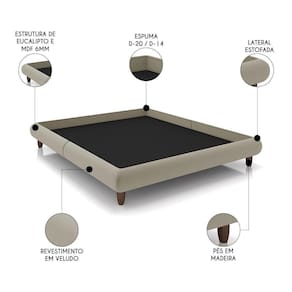 Se você busca uma cama casal que ofereça conforto, qualidade e estilo, então precisa conheçer a Cama Queen Base 158x198cm Pés Madeira Cold P02 Veludo Bege, da Mpozenato. Com um design que foge da tradicional base , essa cama foi desenvolvida para levar um toque de modernidade ao seu quarto, ao passo que agrega charme e estabilidade com os pés em madeira. Ou seja, garante uma noite tranquila e agradável.
