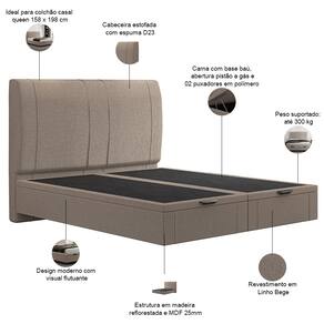 Cama com base baú, abertura pistão a gás e excelente espaço de armazenamento.