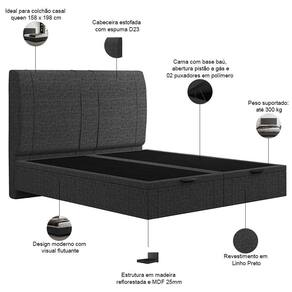Cama Queen Baú Flutuante Com Cabeceira 160cm Spazio S04 Linho Preto - Lyam Decor