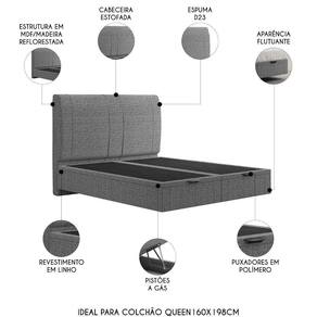 A Cama Queen Flutuante Baú Cabeceira 160cm Fly S05 Linho Cinza, da Mpozenato, é uma cama que representa o ápice do Design Moderno.