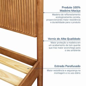 A cama Oiti, disponível nos tamanhos queen e casal, é a síntese perfeita de robustez e elegância em um design rústico sofisticado, trazendo um toque natural e aconchegante ao quarto. Produzida inteiramente em madeira maciça de pinus, a cama possui um acabamento em verniz de alta qualidade que realça a tonalidade quente da madeira, criando um ambiente acolhedor. O grande destaque é a cabeceira com acabamento boleado, que conferem uma textura refinada e visualmente impactante, elevando a peça a um novo patamar de sofisticação. Inspirada na robustez e beleza da árvore Oiti, esta cama oferece uma combinação de durabilidade e estilo, ideal para quem valoriza um ambiente acolhedor sem abrir mão da funcionalidade e do bom gosto. Produto Montado: Sim Acabamento dos Pés: Verniz Acompanha Cama Auxiliar: Não Acompanha Colchão: Não Altura do Estrado até o Chão: 19,8 cm Altura dos Pés: 33,5 cm Altura Máxima dos Pés: 33.5000 Ambiente Principal: Quarto codigo_ean: 7900288014986 Complexidade da Montagem: Baixa: pode ser montado por uma pessoa sozinha Cor: Marrom Cor do Produto: Marrom Escala de Brilho: Semi-Fosco Extensível: Não Itens Inclusos: 01 Cama Queen, manual de montagem e kit ferragens Linha ou Coleção: Oiti Manual de Montagem e Instalação: https://product-hub-prd.madeiramadeira.com.br/968539/documents/9d575fab-1526-4137-a42b-0e07d70ba50e252956690317305015631693.pdf Marca: CabeCasa MadeiraMadeira Material do Estrado: Madeira Maciça Material dos Pés: Madeira Maciça Material Principal: Madeira Maciça Necessita Montagem: Sim Origem do Produto: Nacional Permite a Utilização de Cama Auxiliar: Não Peso: 26 kg Possui Baú: Não Possui Escrivaninha: Não Possui Espelhos: Não Possui Gavetas: Não Possui Grade: Não Possui Nichos: Não Possui Pés: 04 Possui Portas: Não Possui Prateleiras: Não Possui Rodízio: Não Recomendações de Uso, Manutenção e Limpeza: A limpeza deve ser feita com pano levemente umedecido, não utilizar produtos químicos ou abrasivos. Sapatas Niveladoras: Não Sistema de Montagem: Cavilhas e parafusos Tamanho da Cama: Queen Tamanho do Colchão Indicado (L x C): 158 x 198 Tipo de Cama: Convencional Tipo de Colchão: Queen Tipo de Estrado: Fixo Tipo de Madeira Maciça: Pinus Tipo de Madeira Maciça dos Pés: Pinus Trava de Segurança: Não