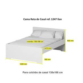 Cama Reta De Casal Com 4 Gavetas Ilan 1254 San Remo * Imagens meramente ilustrativas. Cama com Cabeceira Reta de casal com 4 gavetas para excelente aproveitamento do espaço disponível. Estrado da cama na horizontal e totalmente reforçado: super resistente. Para colchões de casal padrão 138x188cm. - lindo modelo, fácil montagem; - 4 gavetas espaçosas; - estrado super reforçado; - pode ser montada e desmontada sem problema; Para colchão de casal 138x188 cm. DIMENSÕES DO PRODUTO MONTADO: ALTURA 92 CM LARGURA 146 CM PROFUNDIDADE 191 CM Manual de montagem disponível no site do fabricante. Atenção: Não nos responsabilizamos, no ato da entrega, por desmontagens, subir escadas/elevadores ou transporte por guincho para apartamentos. Eventuais despesas são de responsabilidade do cliente. Confira as dimensões deste produto e certifique-se de que o mesmo passará normalmente por supostos elevadores, portas, escadas e/ou corredores de sua moradia.