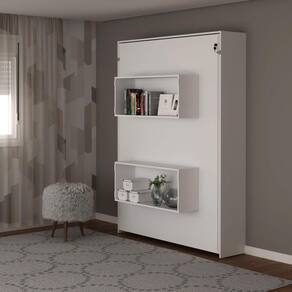 Cama Retrátil de Parede Articulada Casal 147,2x198,5cm Branca Tecnomobili CM8016 Nichos.