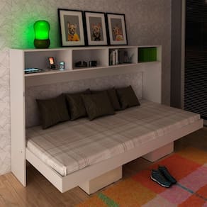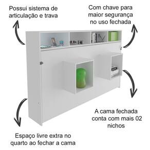 Cama Articulável Horizontal CM8020. Foi desenvolvida especialmente para ambientes compactos, sem deixar de lado o conforto e a beleza. Estrutura em MDP de 15mm, acabamento em pintura Uv/BP. Possui sistema de articulação e trava, para maior possui chave para fechada, conta com 02 nichos grandes quando fechada, é ideal para colchão solteiro 88x188 cm. Indicamos que o colchão tenha até 25cm de altura para ocorrer o fechamento total da cama articulada. Esta cama é perfeita para espaços pequenos como kitnets, desenvolvida 100% ecologicamente correta, o que garante a resistência e vitalidade do produto. Este móvel chegará em sua casa separado em 02 volumes.