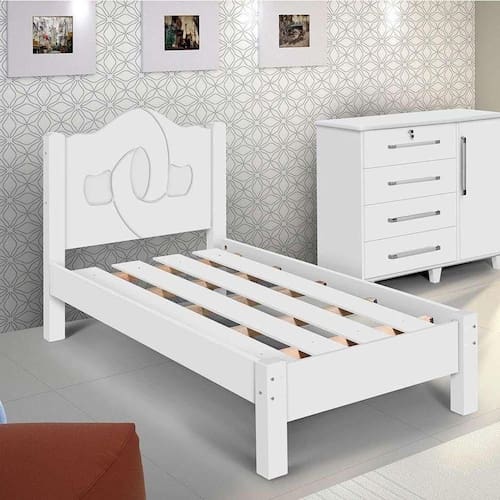 Fabricante: Carmolar | Num. Volumes: 3 | Acompanha Colchão: Com Colchão | Length: 205 | Weight: | Modelo de Cama: Simples | Height: 110 | Produto: Cama | Width: 94 | Material para Filtro: Madeira | Color: Branco | MAX_WEIGHT_SUPPORTED_BY_BED: 100 | REQUIRES_ASSEMBLY: Sim