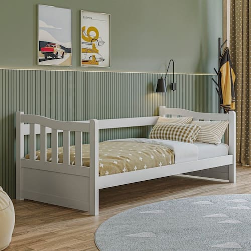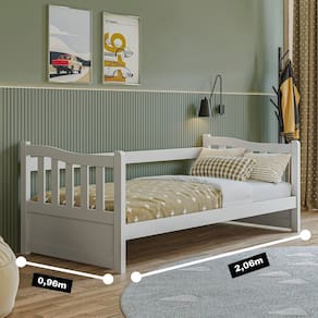 Principais Características: Modelo: SF005 Material: Madeira maciça de Pinus e MDF grosso de 2,2 cm Acabamento: Pintura PU e UV 30% brilho Capacidade de peso: 120 kg Tamanho do colchão recomendado: 188x88 cm (não incluso)
