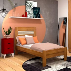 Cama solteiro 100% MDF - Safira -Cinamomo/Off White - Tcil móveis