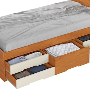 Maximize o espaço do seu quarto com a Cama Solteiro Alice! Com 5 gavetas práticas e espaçosas, ela é perfeita para quem busca otimizar a organização sem abdicar do estilo. A Cama Alice oferece armazenamento extra para roupas, acessórios e objetos pessoais, mantendo tudo sempre à mão e o ambiente mais organizado. Ideal para quartos pequenos ou para quem deseja um espaço funcional e moderno, a Cama Solteiro Alice transforma o ambiente com elegância e praticidade. Invista em conforto e aproveite cada detalhe dessa cama projetada para o seu bem-estar. Não perca a chance de ter a sua! Produto Montado: Sim Acabamento da Gaveta: Pintura Acompanha Cama Auxiliar: Não Acompanha Colchão: Não Altura do Estrado até o Chão: 44,5 cm Ambiente Principal: Quarto codigo_ean: 7900288000675 Complexidade da Montagem: Média: pode ser montado por mais de uma pessoa e/ou necessite de maior conhecimento para montagem Cor: Cinamomo/Off White Cor do Produto: Cinamomo/Off White Cor Flex: Não Escala de Brilho: Fosco Escala de Brilho da Gaveta: Brilhante Extensível: Não Gaveta com Chave: Não Itens Inclusos: 1 Cama + 1 Manual de Montagem + 1 Kit Ferragens Linha ou Coleção: Júlia Manual de Montagem e Instalação: https://product-hub-prd.madeiramadeira.com.br/958031/documents/ae3b23c9-f01d-4595-a986-ac70fc63d10fualcamajliabiancamarcela5g.pdf Marca: Conquista Móveis Material da Gaveta: MDF/MDP Material do Estrado: Pinus e Eucalipto Material Principal: MDF/MDP Montagem Flex: As gavetas podem ser montadas tanto do lado direito ou esquerdo. Necessita Montagem: Sim Origem do Produto: Nacional Permite a Utilização de Cama Auxiliar: Não Peso: 51 kg Peso Máximo por Gaveta: 5 kg Possui Baú: Não Possui Gavetas: Sim Possui Pés: Não Possui Portas: Não Possui Prateleiras: Não Possui Rodízio: Não Quantidade de Gavetas: 05 Gavetas Recomendações de Uso, Manutenção e Limpeza: Na limpeza não utilizar produtos químicos e abrasivos, usar apenas um pano umedecido para garantir a maior durabilidade do móvel. Sistema de Montagem: Parafusos, Cavilhas e Pregos Tamanho do Colchão Indicado (L x C): 88cm x 188cm Tipo de Cama: Convencional Tipo de Colchão: Solteiro Tipo de Corrediça da Gaveta: Metálica Simples Tipo de Estrado: Fixo Tipo de Puxador da Gaveta: Embutido