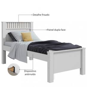 Caracteristicas: 5 Travessoes Barras laterais em MDF de 25mm Estrado em MDF de 6mm Estrutura em MDF/MDP Detalhe frisado Dispositivo antirruido Ideal para colchoes de 880mm Painel dupla-face Pes em MDF com espessura de 74mm Suporta aproximadamente 100Kg