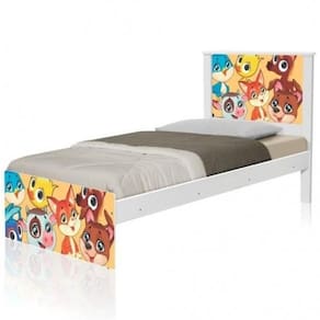 Cama Solteiro Juvenil Barcelona Adesivada Animais com Colchão 107x96x195 cm - Branca