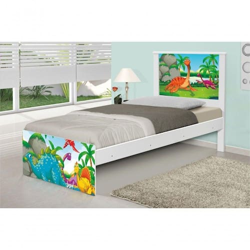 Cama Solteiro Juvenil Barcelona Adesivada Dinossauros no Lago
