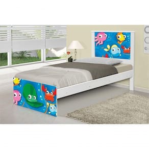 Cama Solteiro Adesivada Fundo Do Mar Peixinhos Com Colchão - Branco
