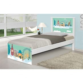Cama Solteiro Juvenil Barcelona Adesivada Mundo Viagens com Colchão