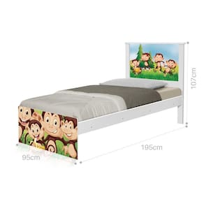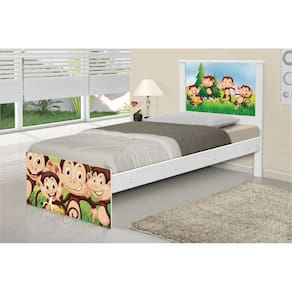 Cama Solteiro Juvenil Barcelona Adesivada Safari Macaquinhos