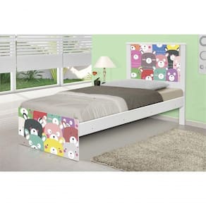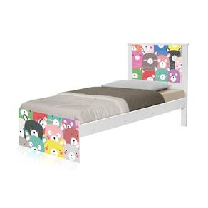 Cama Solteiro Adesivada Ursinhos Coloridos Com Colchão - Branco