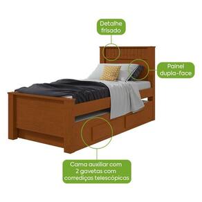 - Cama auxiliar com 02 gavetas, Tamanho ideal para colchões de 880mm (vendido separadamente)