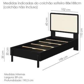 Cama Solteiro 27058 combina design escandinavo com praticidade para o dia a dia. Estrutura em MDP (15/25 mm) e acabamento em pintura BP. No estilo minimalista, é composta por aplique de tela sintética (PVC com poliéster), pés em madeira maciça eucalipto (centrais em MDP 25 mm) e furação extra na cabeceira para ajuste de altura na montagem. Medidas indicadas do colchão solteiro: 88x188 cm (não acompanha colchão). Produto entregue em 2 volumes.