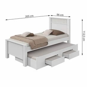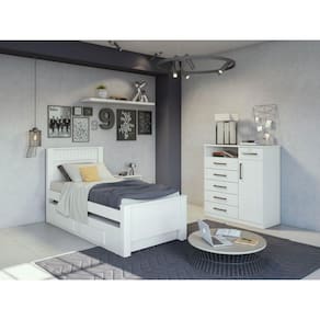 Cama Solteiro Athenas Plus com Auxiliar Lopas - Branco - ByMobille