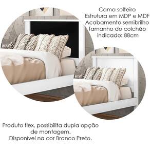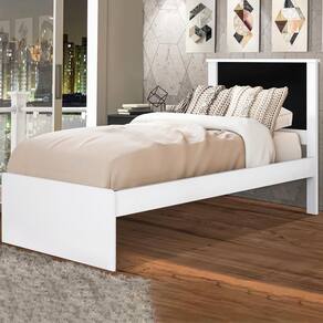 Cama Solteiro Barcelona Branco Branco Preto Tebar Branco Branco Preto