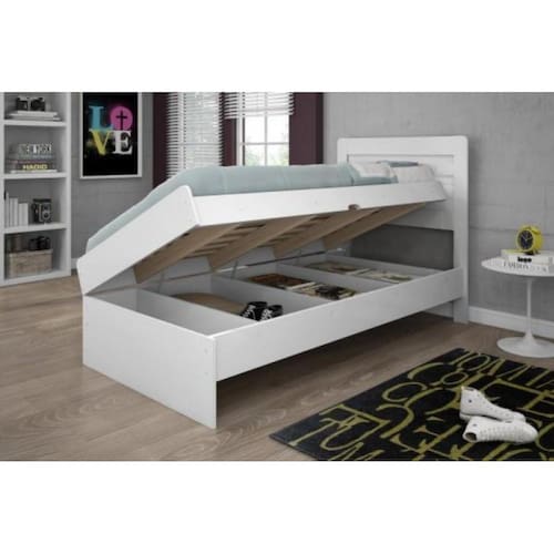 A cama vem com um baú interno amplo, onde poderá guardar muitos objetos utilizando assim melhor o espaço de seu quarto.