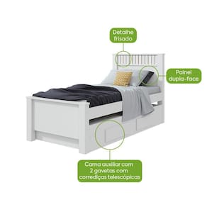 Cama Solteiro Bibox 2 Gavetas Athenas - Lopas Branco
