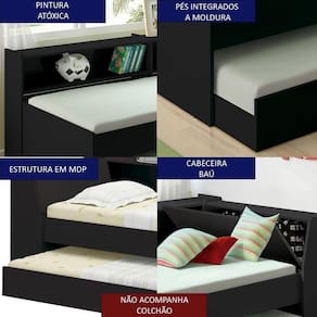Cama Solteiro Bicama Bau Estante 2 Nichos Bb2829 Preto Dtall Preto