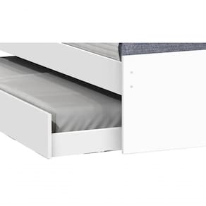 Cama Solteiro Com Auxiliar Prisma Branco - Jea Móveis A Cama Solteiro com Auxiliar Prisma - J&A Móveis é ideal para que o seu dia comece bem, após uma excelente noite de sono. Sua cama auxiliar permite que você acomode mais pessoas no quarto durante a noite, sem ocupar muito espaço durante o dia. Linda e versátil, ela pode ser combinada com diversos estilos de móveis, tornando seu dormitório muito mais prático e ões do Produto Montado:Altura: 91 cmLargura: 194,5 cmProfundidade: 94,5 cmObservações:- Fabricado em MDF/MDP;- Estrado em pinus;- Detalhe na cabeceira em baixo relevo;- Cabeceira com acabamento reversível (branco/lilás);- Cama auxiliar inclusa;- Ideal para Colchões: 188 x 88 cm padrão solteiro em ambas as partes (colchão não incluso);- Altura máxima para colchão auxiliar 14cm;- Pintura ultravioleta com acabamento brilho.