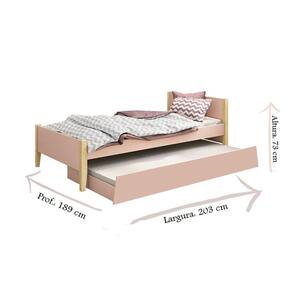 Cama Solteiro com Auxiliar Simba Rosa Acetinado com Pés Natural – Reller