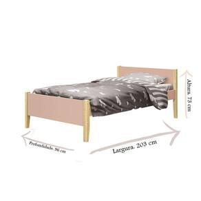 Cama Solteiro Rosa Acetinado com Pés Natural - Reller