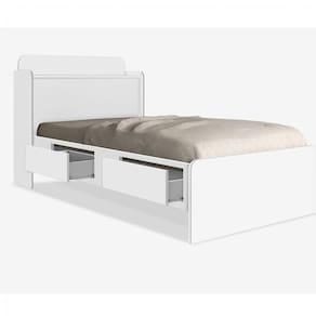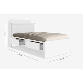 Cama Solteiro com Baú 2 Gavetas Tamires Branco
