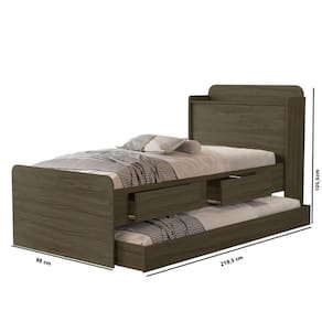 PRODUTO 100% MDF - ACABAMENTO UV BRILHANTE - ( SARRAFOS EM MADEIRA DURA 45 X 22MM ) IDEAL PARA COLCHÃO 1,88 X 0,88 - BAÚ INTERNO - DUAS GAVETAS ( PODEM SER MONTADO DOS DOIS LADOS ) - CORREDIÇA METÁLICA - PESO SUPORTADO 90KG DISTRIBUÍDOS . Acabamento da Gaveta: Pintura Texturizada UV Acompanha Cama Auxiliar: Sim Acompanha Colchão: Não Altura do Estrado até o Chão: 27 cm Altura dos Pés: 98 cm Ambiente Principal: Quarto Cama Auxiliar Acompanha Colchão: Não Cama Auxiliar com Rodízio: Sim Cama Auxiliar Suporta Até (kg): 80 kg Complexidade da Montagem: Baixa: pode ser montado por uma pessoa sozinha Cor: Castanho Cor do Produto: Castanho Escala de Brilho: Brilhante Extensível: Não Gaveta com Chave: Não Itens Inclusos: 1 cama 1 manual de montagem Manual de Montagem e Instalação: https://product-hub-prd.madeiramadeira.com.br/905207/documents/7eabd070-14a8-412e-a6f4-f3142e7cb86c1912951tamiresbibox.pdf Material da Gaveta: MDF Material do Estrado: madeira Material dos Pés: MDF Material Principal: MDF Necessita Montagem: Sim Origem do Produto: Nacional Permite a Utilização de Cama Auxiliar: Não Peso: 59,4 kg Peso Máximo por Gaveta: 5 kg Possui Baú: Sim Possui Gavetas: Sim Possui Pés: 02 Possui Portas: Não Possui Prateleiras: Não Possui Rodízio: Não Recomendações de Uso, Manutenção e Limpeza: 1 pano seco Sapatas Niveladoras: Não Sistema de Montagem: baixa Tamanho do Colchão Indicado (L x C): 1,88x088 Tamanho do Colchão Indicado Cama Auxiliar: 1,88x0,88 Tipo de Cama: Bicama Tipo de Colchão: Solteiro Tipo de Corrediça da Gaveta: Metálica Simples Tipo de Estrado: Removível Tipo de Puxador da Gaveta: Embutido