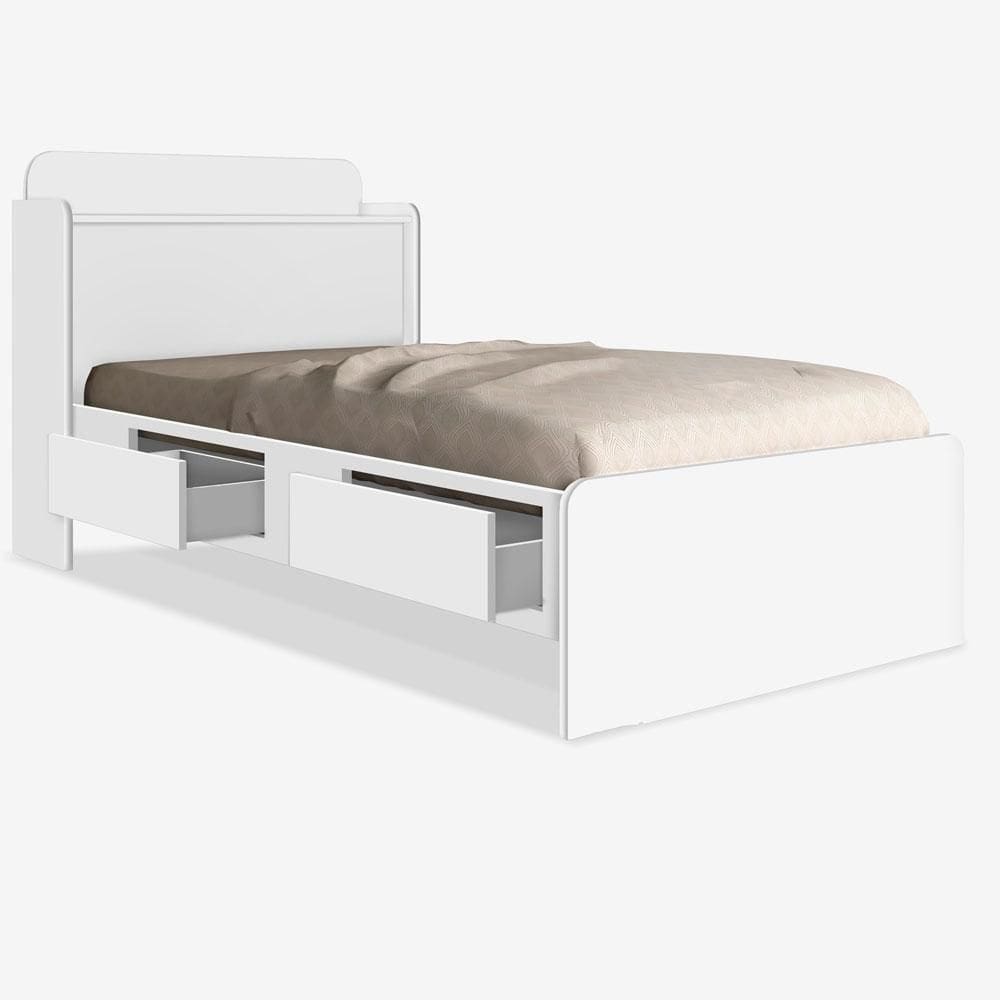 cama solteiro com bau e gaveta branca