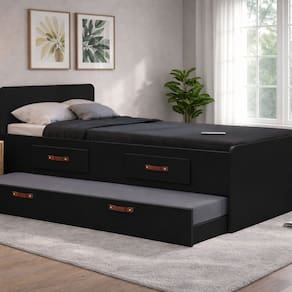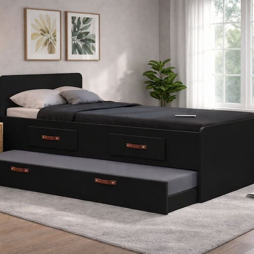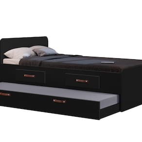 Cama Cindy Solteiro com Gavetas e Cama Auxiliar – Preto