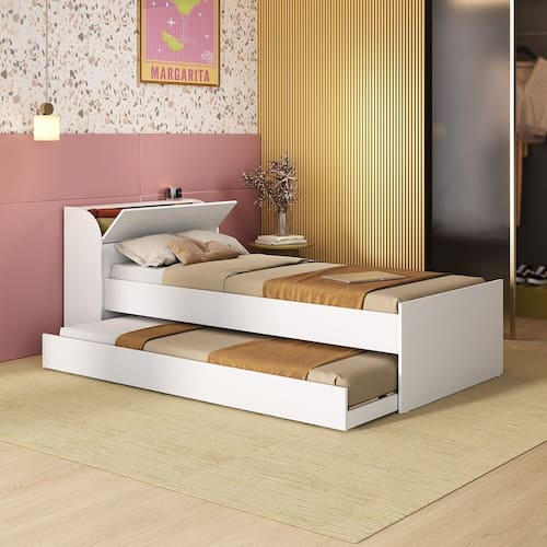 Seu design versátil se adapta facilmente a quartos de solteiro, juvenis ou de hóspedes, tornando o ambiente mais funcional e acolhedor. Produto Montado: Sim Acabamento da Porta: Finish Foil Acompanha Cama Auxiliar: Sim Acompanha Colchão: Não Altura do Estrado até o Chão: 40 cm Ambiente Principal: Quarto Cama Auxiliar Acompanha Colchão: Não Cama Auxiliar com Rodízio: Não Cama Auxiliar Suporta Até (kg): 80 kg codigo_ean: 7900288283849 Complexidade da Montagem: Média: pode ser montado por mais de uma pessoa e/ou necessite de maior conhecimento para montagem Cor: Branco Cor do Produto: Branco Escala de Brilho: Fosco Escala de Brilho da Porta: Fosco Extensível: Não Itens Inclusos: 1 Cama, 1 Cama Auxiliar, Kit Ferragem e Manual de Montagem Linha ou Coleção: Lumina Manual de Montagem e Instalação: https://product-hub-prd.madeiramadeira.com.br/322925329/documents/48540ba2-8e77-4896-b82e-e88b058b5af23305874547517618766904697.pdf Marca: Espresso Móveis Material da Porta: MDP Material do Estrado: MDF Material Principal: MDP Necessita Montagem: Sim Origem do Produto: Nacional Permite a Utilização de Cama Auxiliar: Sim Peso: 77 kg Possui Baú: Sim Possui Gavetas: Não Possui Nichos: Não Possui Pés: Não Possui Portas: Sim Possui Prateleiras: Não Possui Rodízio: Não Quantidade de Portas: 01 Recomendações de Uso, Manutenção e Limpeza: Utilizar Pano Úmido Sistema de Montagem: Parafusos, pregos e cavilhas Tamanho da Cama: Solteiro Tamanho do Colchão Indicado (L x C): 188 cm (comprimento) x 88 cm (largura) Tamanho do Colchão Indicado Cama Auxiliar: 188 cm (comprimento) x 78 cm (largura) Tipo de Cama: Convencional Tipo de Colchão: Solteiro Tipo de Dobradiça/Corrediça da Porta: Plástica Tipo de Estrado: Fixo Tipo de Porta: Bater Tipo de Puxador da Porta: Embutido