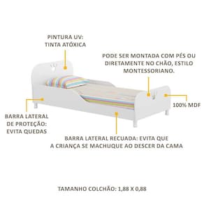 peça. As barras laterais de proteção garantem segurança para as crianças durante o sono.