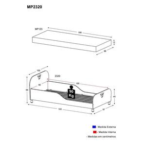 Cama - Altura: 69cm | Largura: 193cm | Profundidade: 100cm