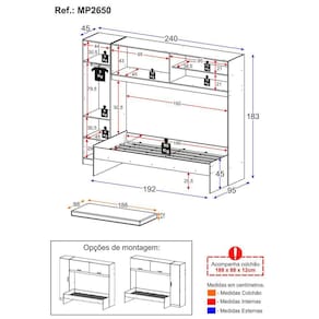 Cama: Altura: 45cm | Largura: 192cm | Profundidade: 95cm