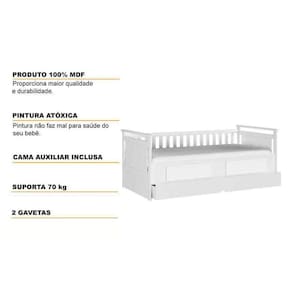 Cama Solteiro de Babá Maria c/ 2 Gavetas e Auxiliar Branco/Amendoa - Peroba