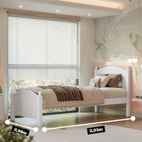 Largura: 98 cm Comprimento: 203 cm Altura da Cabeceira: 90 cm Altura da Peseira: 65 cm Tamanho do colchão recomendado: 188 cm x 88 cm (não incluso)
