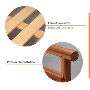 Nada como uma boa noite de sono para melhorar a vida de qualquer um, não é mesmo? Após um dia bem longo, é tão bom deitar na nossa cama. Por isso é tão essencial investir no nosso quarto, deixa-lo um pouquinho mais relax, confortável, aconchegante. A Cama Begônia é um modelo estruturado em aço, estrado em MDF e pintura Cobre. Ela também é perfeita para um visual mais clean e chique. Fácil de combinar com armários, cômodas e também temos a Mesa de Cabeceira da mesma linha. Suas medidas são: 100cm Altura x 213cm Largura x 210cm Profundidade. Depois nos conte como foi a experiência de compra e como ficou seu ambiente nos comentários. Acabamento dos Pés: Pintura Acompanha Cama Auxiliar: Não Acompanha Colchão: Não Altura do Estrado até o Chão: 30 Altura dos Pés: 31 Ambiente Principal: Quarto Complexidade da Montagem: Média: pode ser montado por mais de uma pessoa e/ou necessite de maior conhecimento para montagem Comprimento: 188 Cor: Cobre Cor do Produto: Cobre Escala de Brilho: Brilhante Extensível: Não Informações Complementares: Pés centrais 31cm, pés peseira 48cm, pés cabeceira 100cm. Pés centrais não tocam o chão. Itens Inclusos: 1 Cama Solteiro, Kit Ferragens e Manual de Montagem Linha ou Coleção: Begônia Manual de Montagem e Instalação: https://product-hub-prd.madeiramadeira.com.br/861269/documents/21ec015f-7150-413d-a2db-3147e3f573131426516begniasolteiro.pdf Material do Estrado: MDF Material dos Pés: Aço Material Principal: Aço Necessita Montagem: Sim Origem do Produto: Nacional Permite a Utilização de Cama Auxiliar: Não Peso: 25 Possui Baú: Não Possui Gavetas: Não Possui Grade: Não Possui Pés: 06 Possui Portas: Não Possui Prateleiras: Não Possui Rodízio: Não Recomendações de Uso, Manutenção e Limpeza: Limpeza Use um pano macio, levemente umedecido com água. É possível o uso detergente neutro, ou sabão neutro com água. Manutenção Para garantir estabilidade e durabilidade, é recomendado reapertar os parafusos de tempos em tempos. Ventilação A falta de ventilação e excesso de calor pode prejudicar a durabilidade e acabamento do produto. Sapatas Niveladoras: Não Sistema de Montagem: Parafusos, porcas e chaves Tamanho da Cama: Solteiro Tamanho do Colchão Indicado (L x C): 88x188 Tipo de Cama: Convencional Tipo de Colchão: Solteiro Tipo de Estrado: Fixo