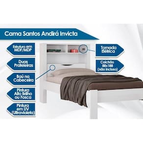 Todas as informações divulgadas são de responsabilidade exclusiva do fabricante/fornecedor. Tipo de Estrutura do Móvel: MDF/MDP | Quantidade de Prateleiras: 2 Prateleiras | Certificação de Qualidade de Móveis: ISO 14001 | Garantia: 3 meses | Tipo de Pintura: UV | Tamanho do colchão para usar na cama: Solteiro 88x188 | Tipo de Acabamento da Pintura: Alto Brilho/Fosca | Tipo de Cama: Tradicional | Tamanho da Cama: Solteiro | Garantia de Fábrica: Garantia de Fábrica | Quantidade de Gavetas: 1 Gaveta | Com cama auxiliar: Não | Com gavetas: Sim | Com prateleiras: Não | É kit: Não | Requer montagem: Sim | É Temática: Não | Com grades: Sim | Com escada: Não | Com dossel: Não | Com espaço de armazenamento: Não | Fonte do produto: N/A | Materiais: Alumínio | Nome do desenho: Princesas | Quantidade de sapateiras: 0 | Quantidade de espaços de armazenamento: 0 | É Montessori: Não | Com sapateira: Não | Condição do item: Novo | Peso máximo suportado por cama: N/A KG | Classificação da Cama: Solteiro | Modelo de Cama: Simples | Código universal de produto (GTIN): 7896659460059 | Condição do Item: Novo | Numeral: 0 | Não se Aplica: N/A | Não Possui: Não | Linha/Modelo: Santos Andirá | Cor Cnova: Blush | Cor Meli: Branco | tegoria Trilha: Quarto Juvenil e Solteiro> Cama de Solteiro | Categoria - Sub: Cama de Solteiro | Categoria - Pai: Quarto Juvenil e Solteiro | Comprimento Embalagem: 0.09 | Largura Embalagem: 1.00 | Altura Embalagem: 1.00 | Peso: 40.00 Kg | Kit: 0 | Peso Real Kg: 40.00 | Peso Cubado: 23.00 | Volumes: 2 | M3: 0.09 | Comprimento/Profundidade: 216 cm | Largura: 98 cm | Altura: 112 cm | Tamanho Montado: Larg:98.00 x Comp/Prof:216.00 x Alt: 112.00 | Comprimento/Profundidade Montado: 216.00 | Largura Montado: 98.00 | Altura Montado: 112.00 | Cor Fabricante: Branco | Data Cadastro: 2023-8-1 3:2:45 | Sigla Estoque: 1 | Marca: Santos Andirá