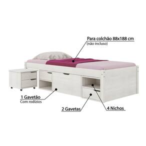 Praticidade ou organização no seu quarto não será mais um problema, ainda mais quando não há muito espaço disponível. A Cama Solteiro da Inter Link é multifuncional e oferece todas as soluções em um único produto, além de ter um design moderno, conta com vários compartimentos, como gavetas, nichos e mesa de cabeceira, os quais proporcionam um espaço a mais para que você possa guardar roupas de cama, objetos de decoração, ou o que desejar. Perfeita para dar aquele toque especial na organização do ambiente, otimizando espaço. Estrutura em madeira maciça de pinus com acabamento em Laca que garante mais resistência e durabilidade.