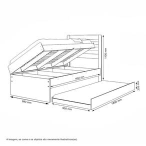 - Possui baú embaixo do estrado. Dimensões: Alt: 22 cm, Larg: 53 cm, Prof: 190 cm
