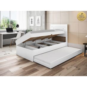Dimensões do Produto Montado: Altura: 111cm Largura: 98cm Profundidade: 195cm Observações: - Material: MDF / Ripas Pinus - Sarrafo Madeira - Tamanho da Cama: Solteiro - Ideal para Colchões: 88x188 cm - Acompanha colchão: Não - Peso Suportado: 120kg Mais informações - Possui baú embaixo do estrado. Dimensões: Alt: 22 cm, Larg: 53 cm, Prof: 190 cm - Possui cama auxíliar: Alt: 20,5cm x Larg: 93cm x Prof: 189,5cm - Peso suportado na cama auxiliar: 70kg - Cama Auxiliar ideal para colchões: 88cm x 188cm x 12cm de altura (colchão não incluso) Informações adicionais: - Verifique o tamanho e os detalhes do produto antes de realizar a compra. - As fotos são meramente ilustrativa. - A transportadora entregará o produto no portão e/ou portaria da residência, ou ainda, somente no andar térreo, em caso de prédios, do endereço de entrega. - Avaliar a mercadoria no ato do recebimento e recusar em caso de divergência ou danos. - Não nos responsabilizamos pela montagem e desmontagem do produto no ato da entrega e devolução, assim como os custos gerados nestas situações. - Sugerimos a contratação de um montador profissional para a montagem do produto. Não nos responsabilizamos por danos causadas no ato da montagem.