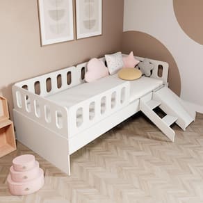 Diferenciais: MDF Melamina 15mm, Estrados em Madeira Maciça, Escadinha/Escorrega, 03 Grades e Cabeceira e Peseira Anatômica.