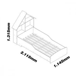 Características: Estrutura em MDF Prateleiras em MDP 15 mm Design em formato de casinha Arte impressa decorativa Para colchões de 88 cm